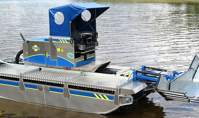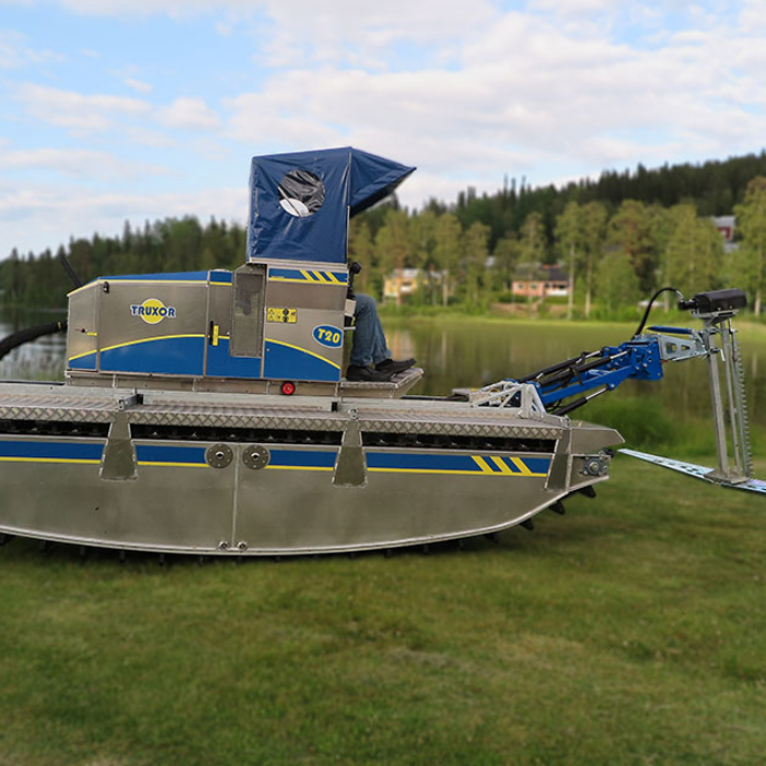 Truxor T20 is built with a 24.8 hp engine. Truxor T20 fulfils the latest environmental requirements. The model is ideal for weed cutting and collection of water plants and is equipped with one hydraulic outlet for running the cutter tool. The capacity of the Truxor is well suited for weed harvesting. For tools that require more power, we recommend machines from the T-series with higher capacity.