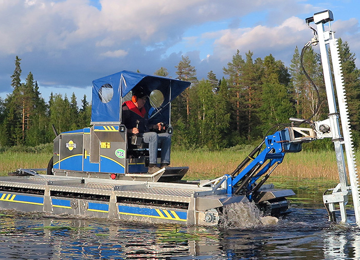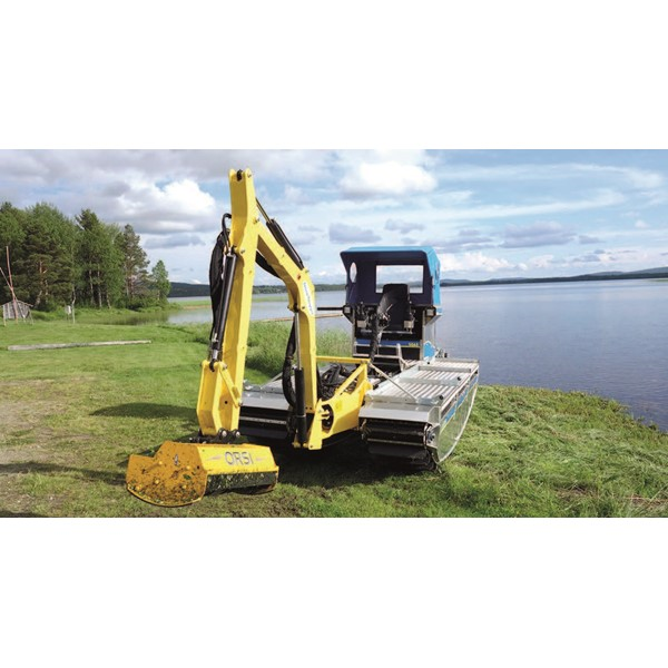 The maximum depth and reach have been measured from the water surface. <strong>Maximum excavation depth:</strong> 3 m <strong>Maximum lifting height:</strong> 2,9 m <strong>Maximum reach (radius):</strong> 4 m <strong>Maximum reach (diameter):</strong> 8 m <strong>Maximum turning radius:</strong> 180° <strong>Maximum depth for outrigger pontoons, stabilisation against the bottom (excavation):</strong> 2 m <strong>Excavation aggregate:</strong> 232 kg If the water depth is less than 0.1 m, the outriggers can can be removed. The machine will then be lighter and more flexible for use in wetlands, for example. Valve package equipped with two-lever system. Semi-automatic quick bracket DM X3. Complete for mounting on T-serie machines. Excluding outrigger pontoons and buckets. <strong>Doro digger cannot be used at the same time as propeller (91-104200).</strong>Read more -