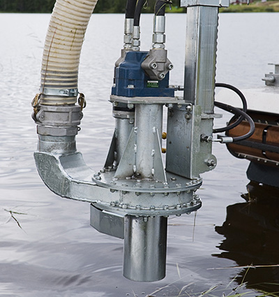 The Doro pump is a hydraulically operated dredge pump with a screw feeder that breaks off and feeds sediment into the pump intake. The Doro pump is easy to attach and changing to another tool takes only a few minutes. The Doro pump is delivered ready for assembly on the lifting arm.